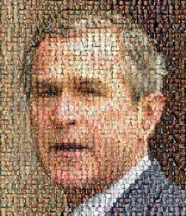 This picture of George W. Bush made from the faces of soldiers who died in Iraq last year. It is composed by the great contemporary artist Chuck Close. Mr. Benz of Portland, who sends this artwork our way, calls it another masterpiece of the artist. Go to the larger picture.